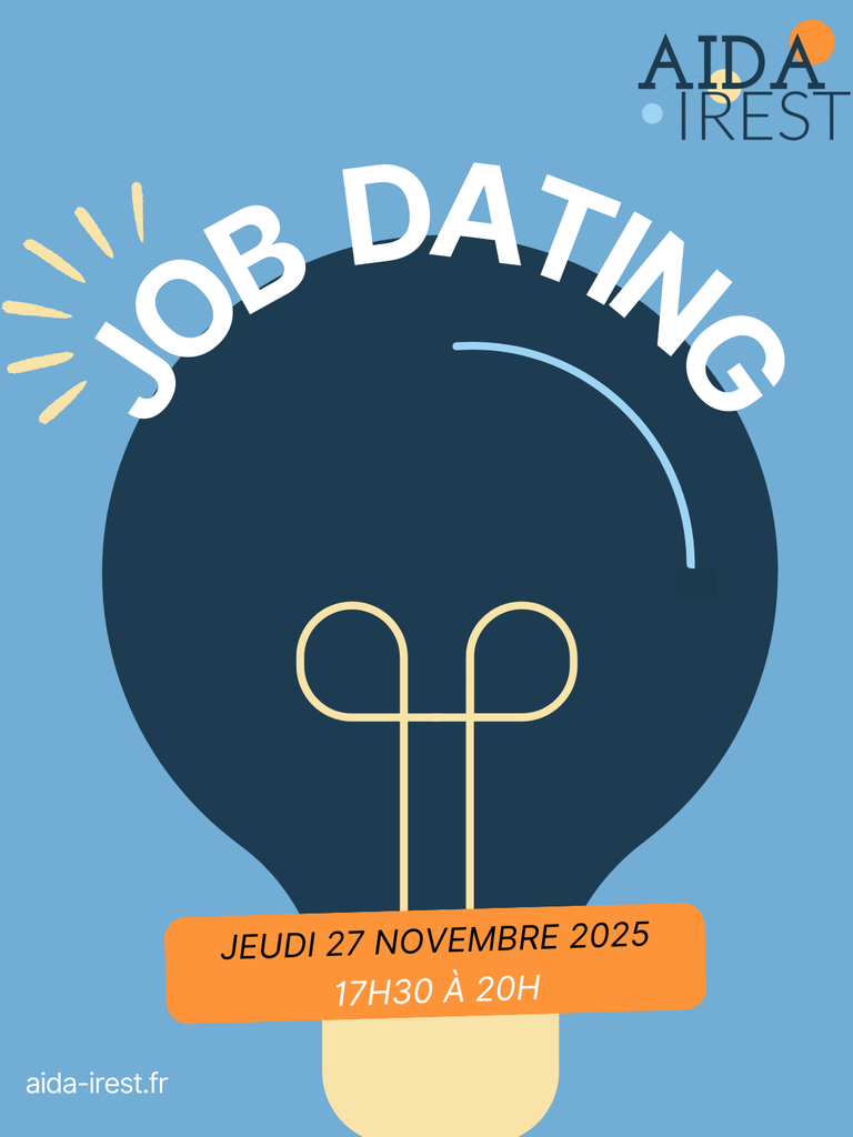 AIDA-IREST organise, avec le soutien de l'IREST et l'appui de l'IRESTREA, la 12e édition du Job Dating IREST au bénéfice des étudiants de l'IREST et des entreprises et organismes en recherche de stagiaires et d'alternants.
